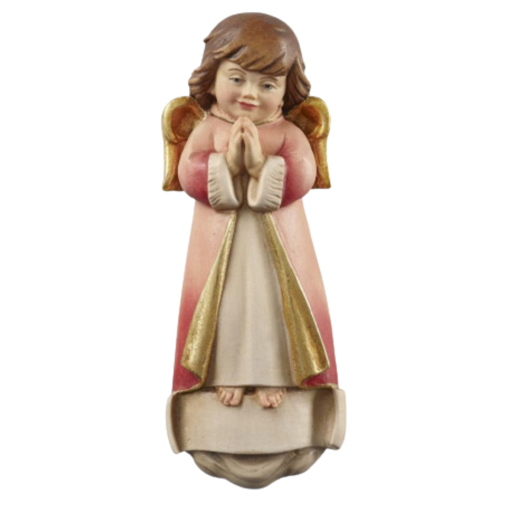 Drevené sošky anjelov sú nádherne vyrezané z masívneho dreva, ručne maľované jemnými olejovými farbami a niektoré modely sú zlatené plátkovým zlatom. Dostupné vo farbe, alebo prevedení natur (prírodné drevo).