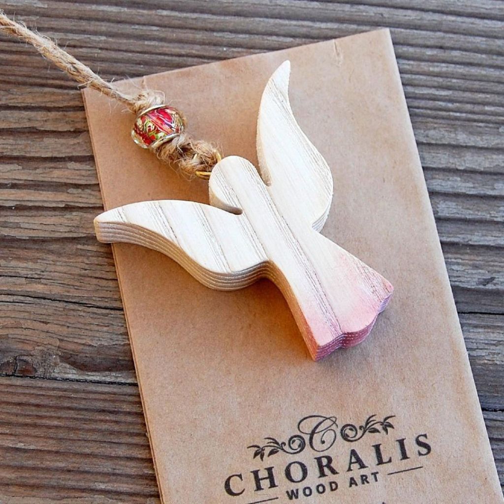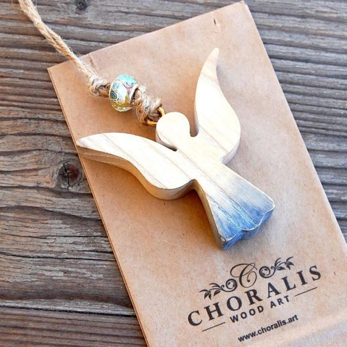 Malý drevený anjel nádherne a do posledného detailu opracovaný prinesie pokoj do vášho života a bude vás chrániť. Vhodný aj ako darček k svätému prijímaniu alebo krstu. Ručne vyrobený z kvalitného jaseňového dreva a doplnený žiarivou akrylovou korálkou.