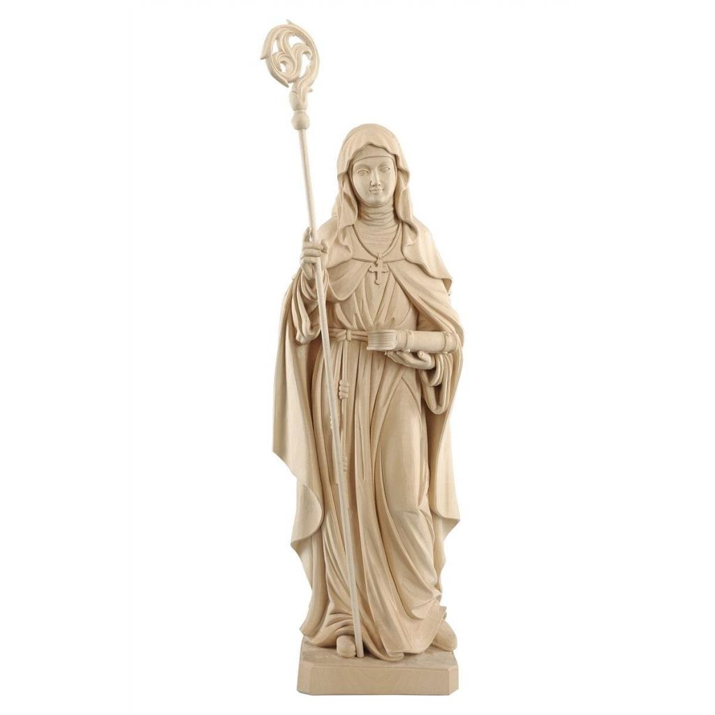 Drevená socha je nádherne maľovaná jemnými olejovými farbami a zlátená plátkovým zlatom. Dostupná vo farbe alebo prevedení natur (prírodné drevo) v rôznych veľkostiach.