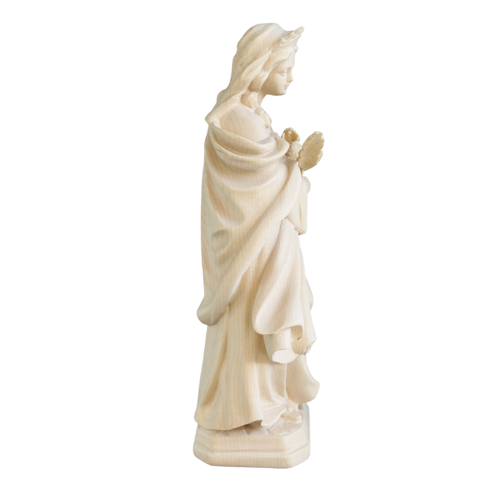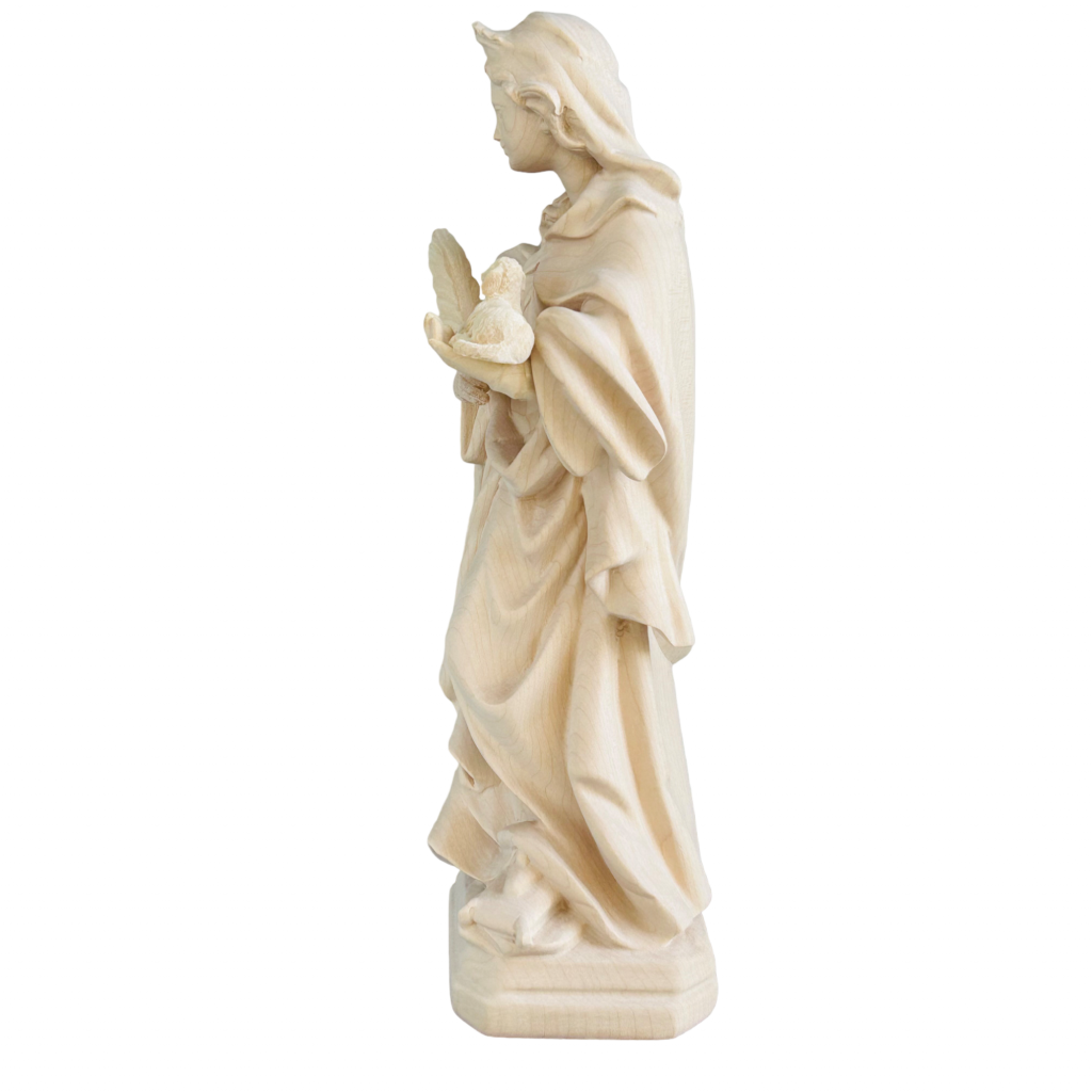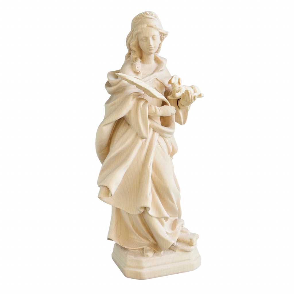Svätá Agnesa Rímska bola jednou z najviac uctievaných ranokresťanských svätíc z obdobia prenasledovania kresťanov za vlády cisára Diokleciána. Jej atribútom je baránok. Socha sv. Agnesy je nádherne vyrezaná z javorového dreva, ručne maľovaná jemnými olejovými farbami a zlátená plátkovým zlatom. Dostupná vo farbe alebo prevedení „natur“ (prírodné drevo) v rôznych veľkostiach.