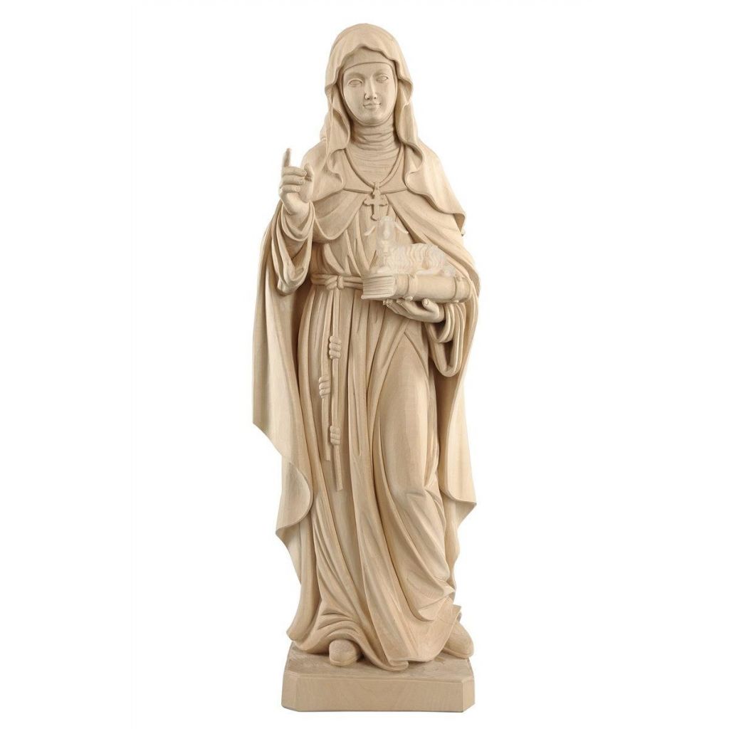 Drevená socha je nádherne maľovaná jemnými olejovými farbami a zlátená plátkovým zlatom. Dostupná vo farbe alebo prevedení natur (prírodné drevo) v rôznych veľkostiach.