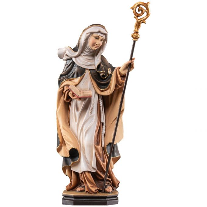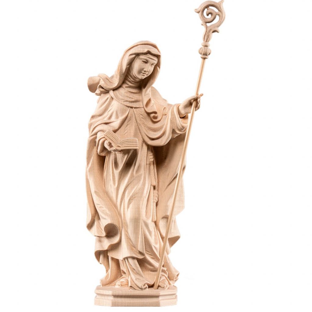 Drevená socha je vyrezaná z javorového dreva, nádherne maľovaná jemnými olejovými farbami a zlátená pravým plátkovým zlatom. Dostupná vo farbe, alebo prevedení natur (prírodné drevo) v rôznych veľkostiach.