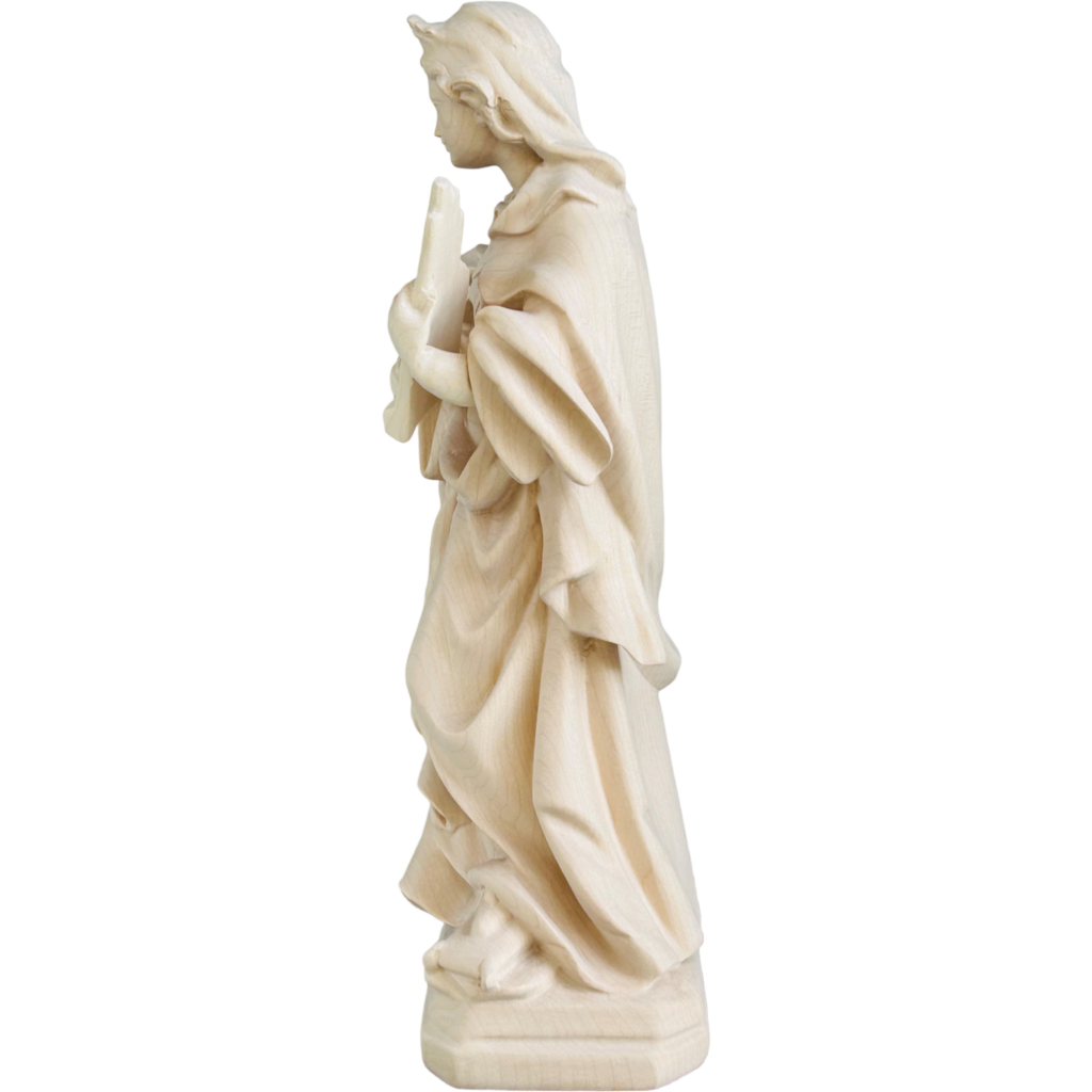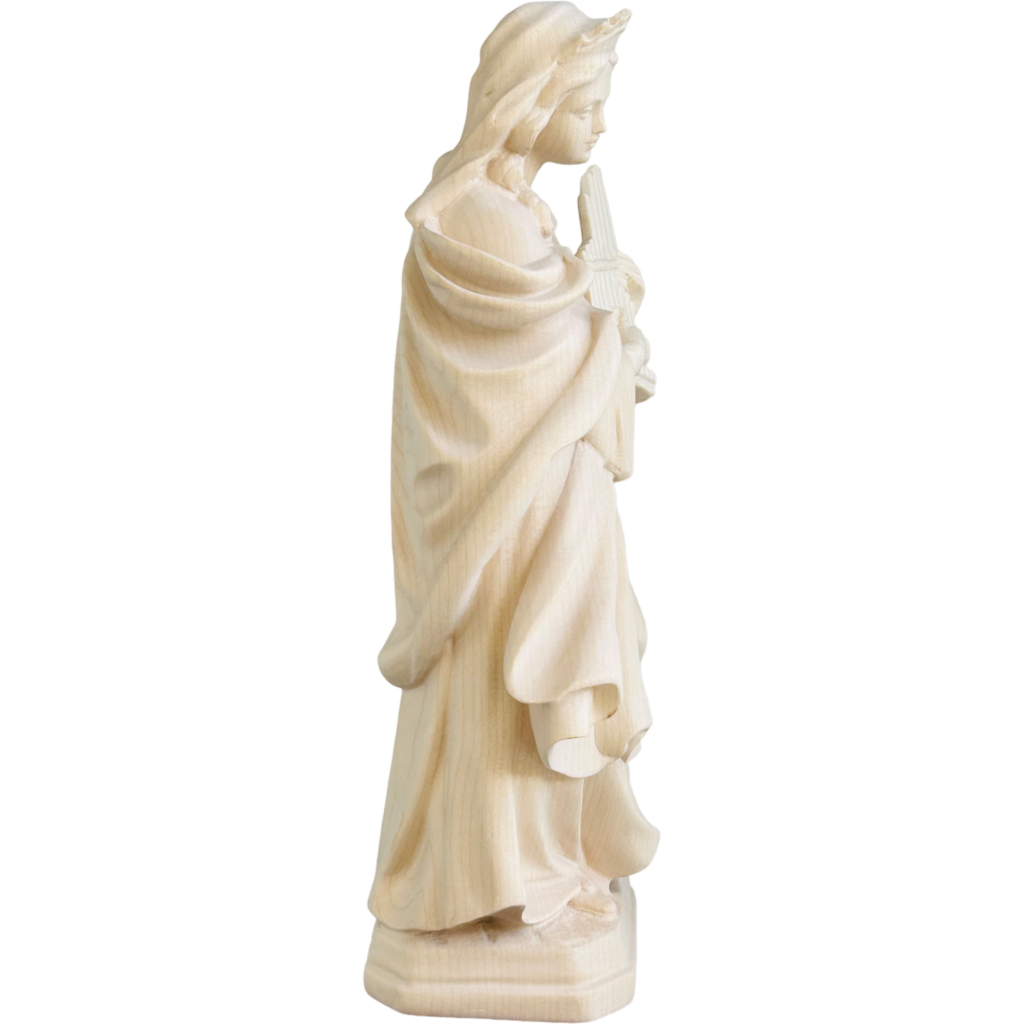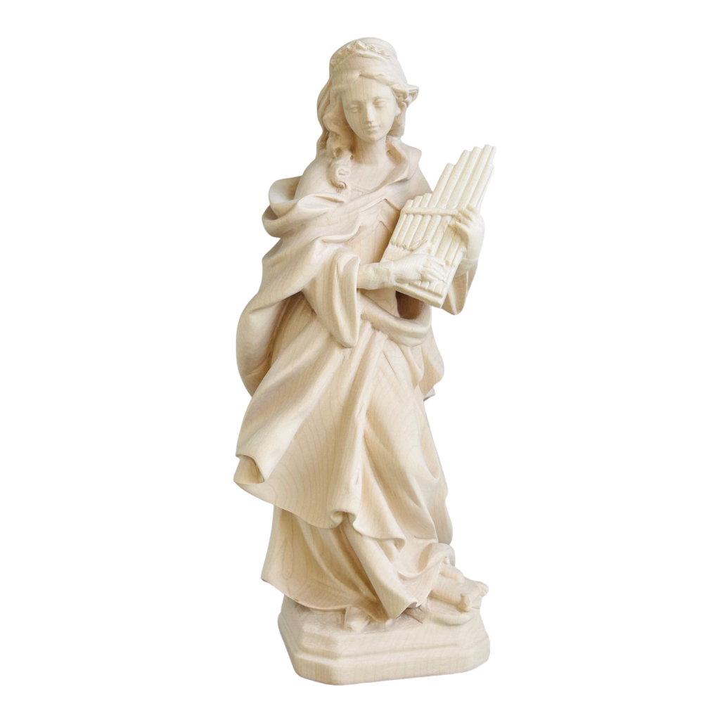Socha sv. Cecílie je nádherne vyrezaná z javorového dreva, ručne maľovaná jemnými olejovými farbami a zlátená plátkovým zlatom.Dostupná vo farbe alebo prevedení „natur“ (prírodné drevo) v rôznych veľkostiach.