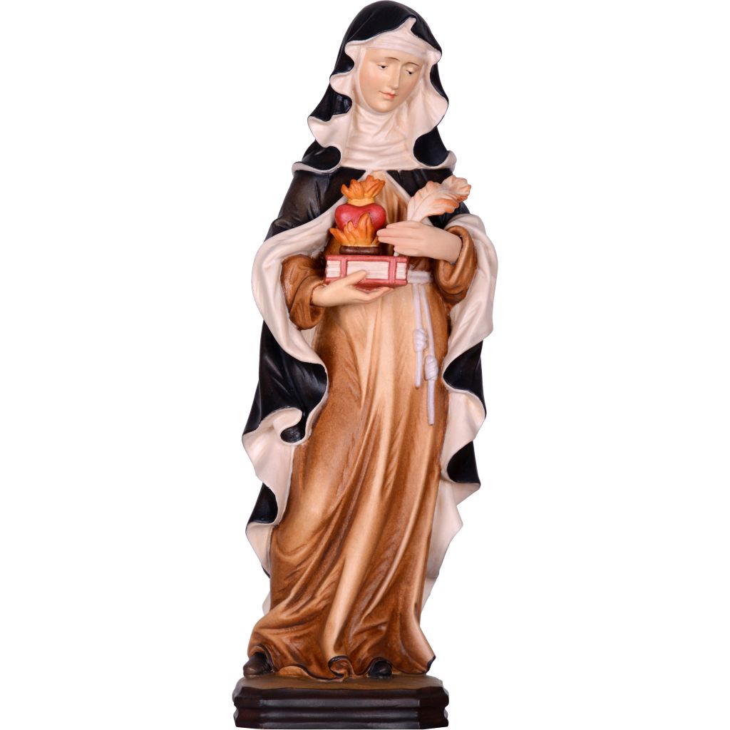 Drevená socha Svätej Gertrúdy je vyrezaná z masívneho dreva, nádherne maľovaná jemnými olejovými farbami a zlátená plátkovým zlatom. Dostupná vo farbe, alebo prevedení natur (prírodné drevo) v rôznych veľkostiach.
