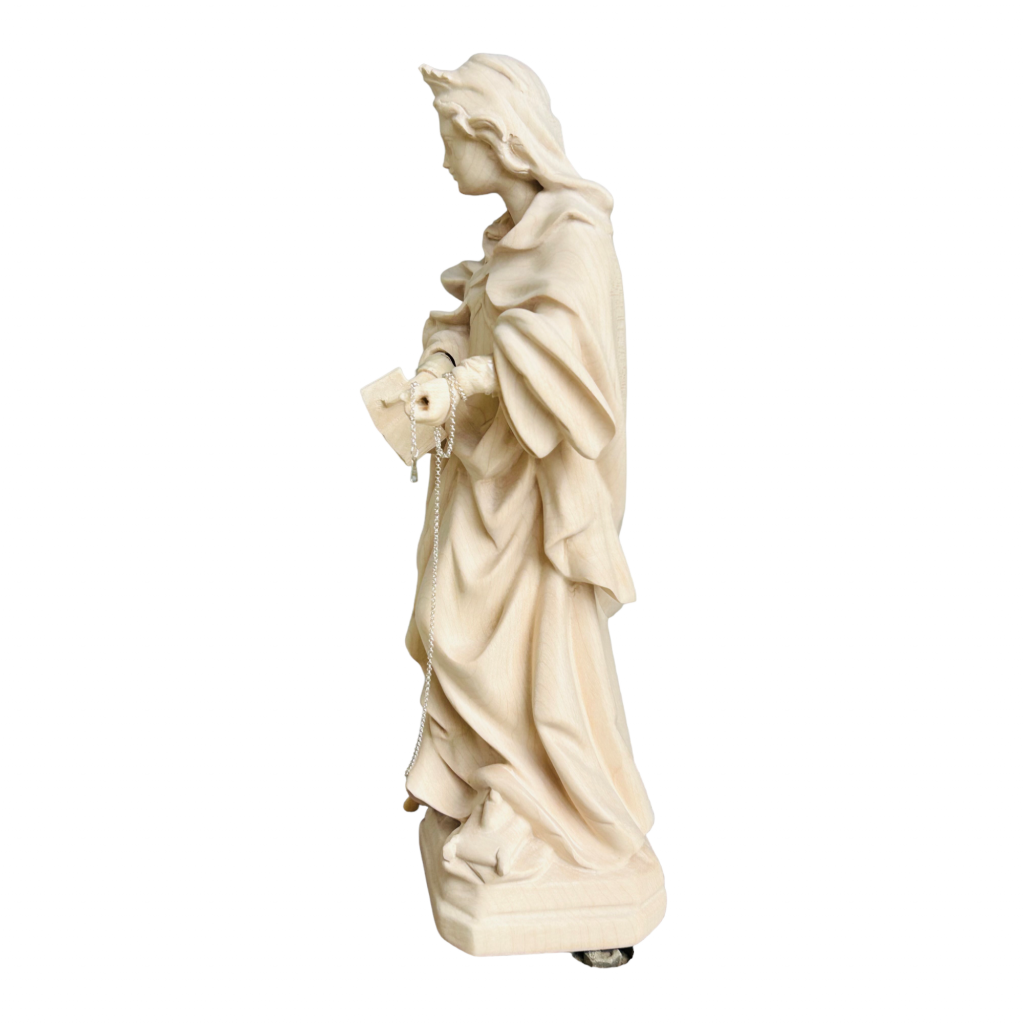 Socha sv. Juliany je nádherne vyrezaná z javorového dreva, ručne maľovaná jemnými olejovými farbami a zlátená plátkovým zlatom. Dostupná vo farbe alebo prevedení „natur“ (prírodné drevo) v rôznych veľkostiach.