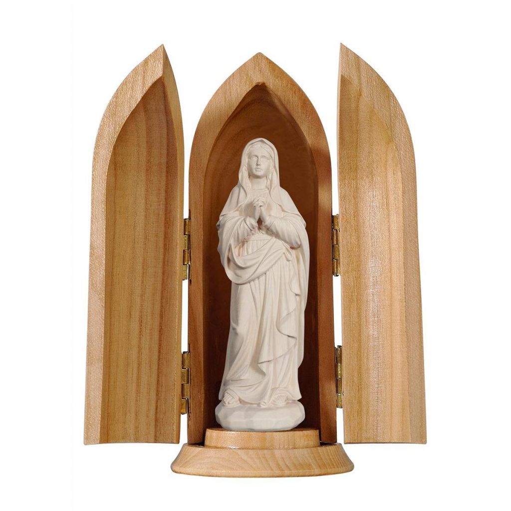 Drevená socha Svätej Márie pod krížom v kaplnke je nádherne vyrezaná z javorového dreva, ručne maľovaná jemnými olejovými farbami a zlátená plátkovým zlatom.