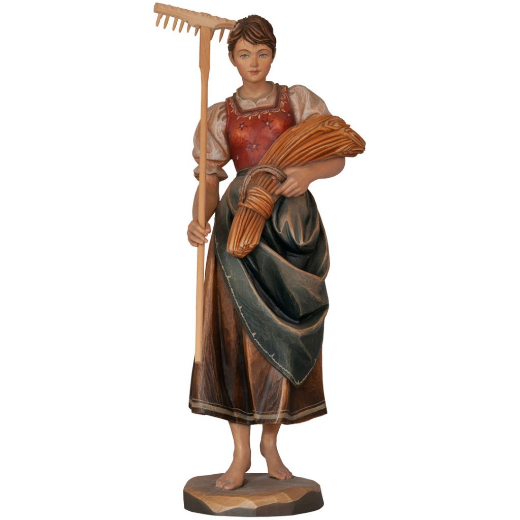 Drevená socha svätej Notburgy je nádherne vyrezaná z javorového dreva, ručne maľovaná jemnými olejovými farbami a zlátená plátkovým zlatom.