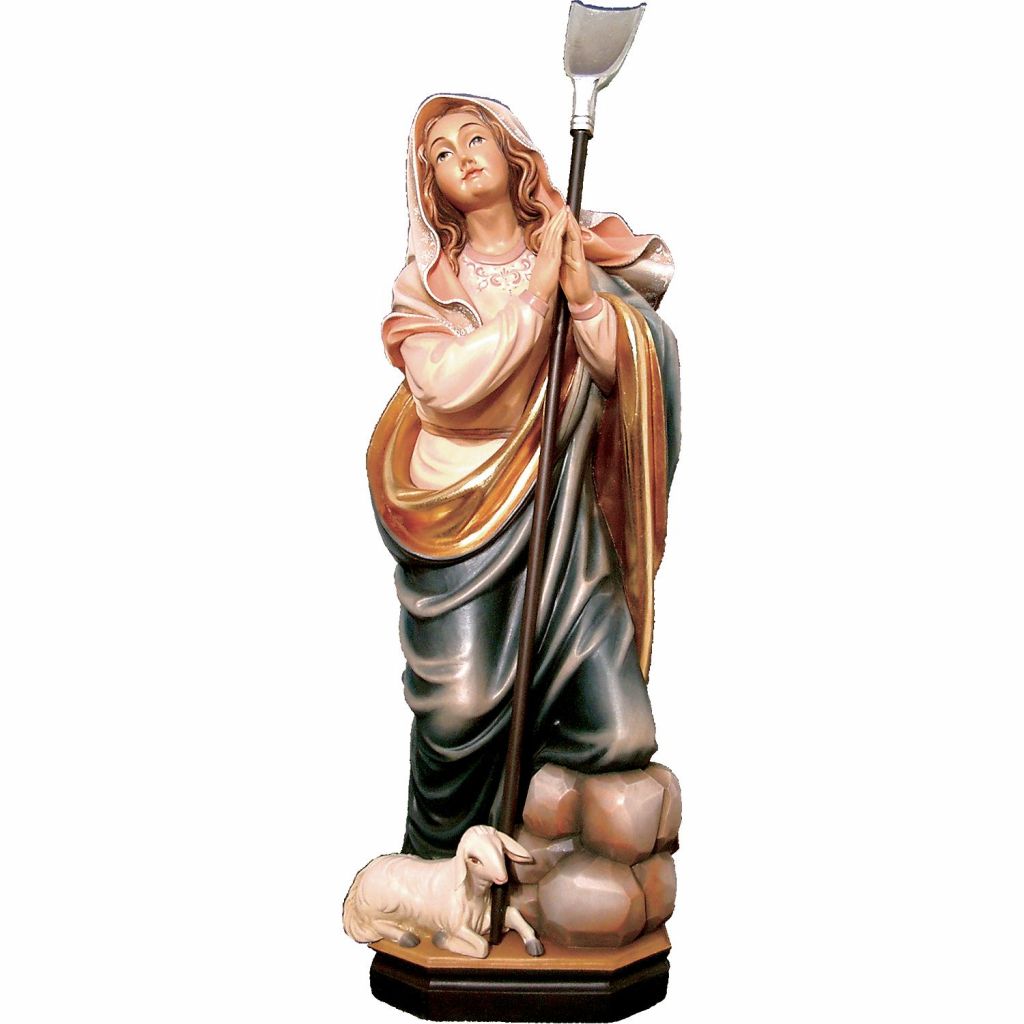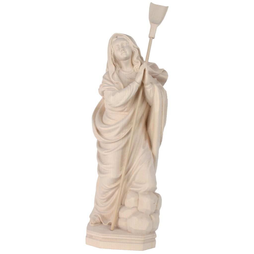 Drevená socha je vyrezaná z javorového dreva, nádherne maľovaná jemnými olejovými farbami a zlátená pravým plátkovým zlatom. Dostupná vo farbe, alebo prevedení natur (prírodné drevo) v rôznych veľkostiach.