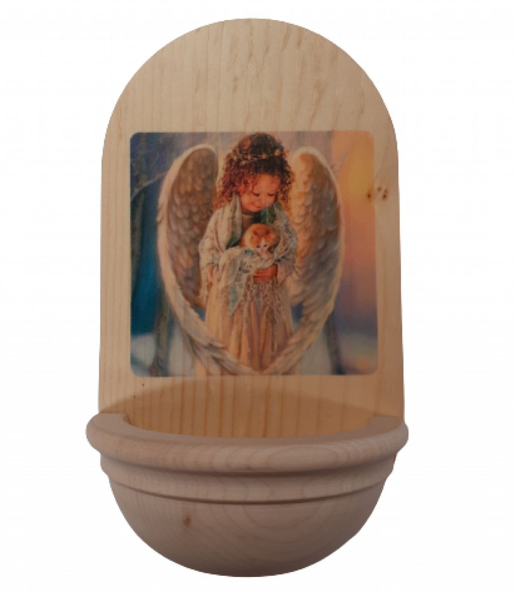 Drevená svätenička s anjelom a mačiatkom