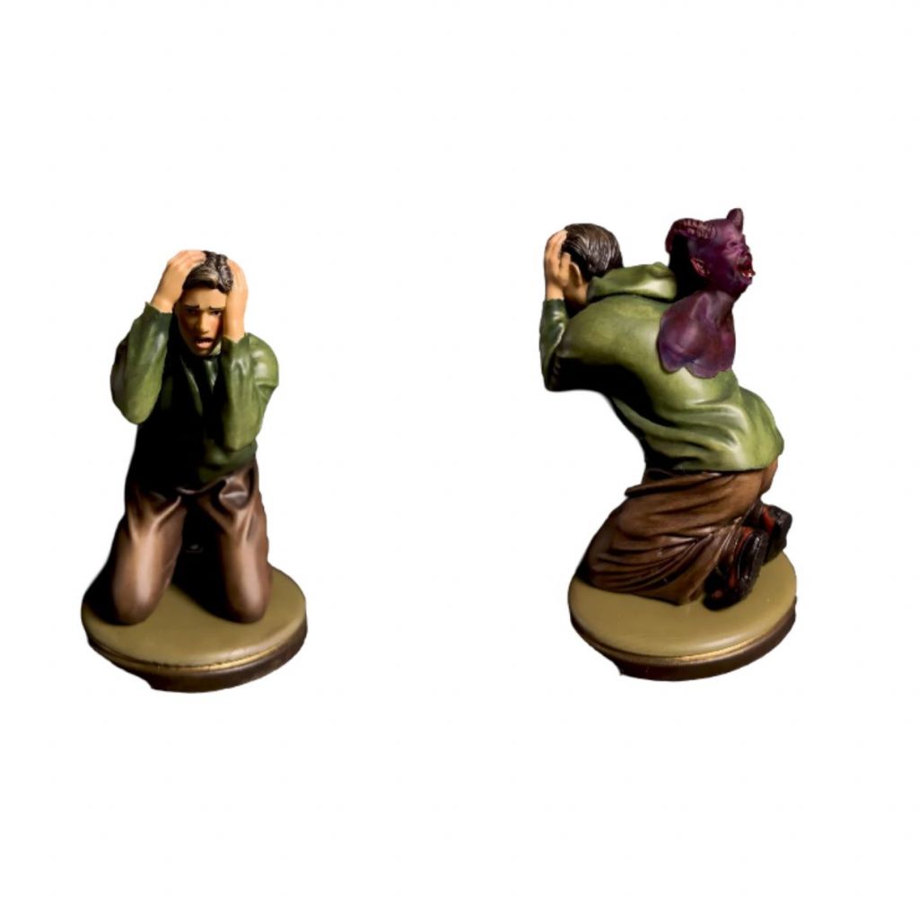 Táto mocná figúrka je poctou jeho nebojácnemu boju proti zlu, jeho hlbokej viere a jeho úlohe duchovného bojovníka a vodcu. Postava démona sa pred ním cúva, symbolizujúc večný stret medzi svetlom a temnotou.