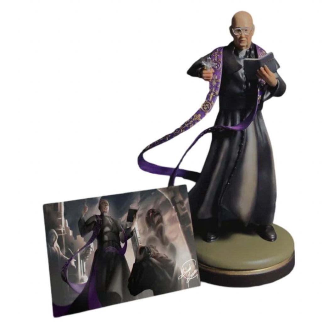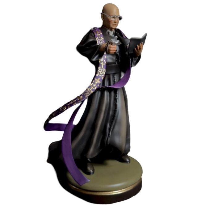 Uctite si odkaz jedného z najznámejších exorcistov katolíckej cirkvi touto pozoruhodnou pamätnou sochou Gabrieleho Amortha. Táto zberateľská socha, ručne maľovaná s bohatými detailmi a vyrobená s úctou, zachytáva otca Amortha uprostred exorcizmu – drží Knihu rituálov, svätenú vodu a je ozdobená ikonickou fialovou štólou.