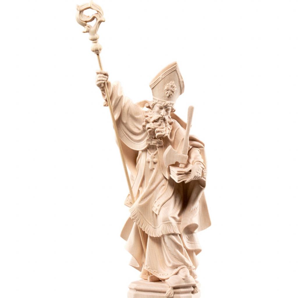 Drevená socha je vyrezaná z javorového dreva, nádherne maľovaná jemnými olejovými farbami a zlátená pravým plátkovým zlatom. Dostupná vo farbe, alebo prevedení natur (prírodné drevo) v rôznych veľkostiach.