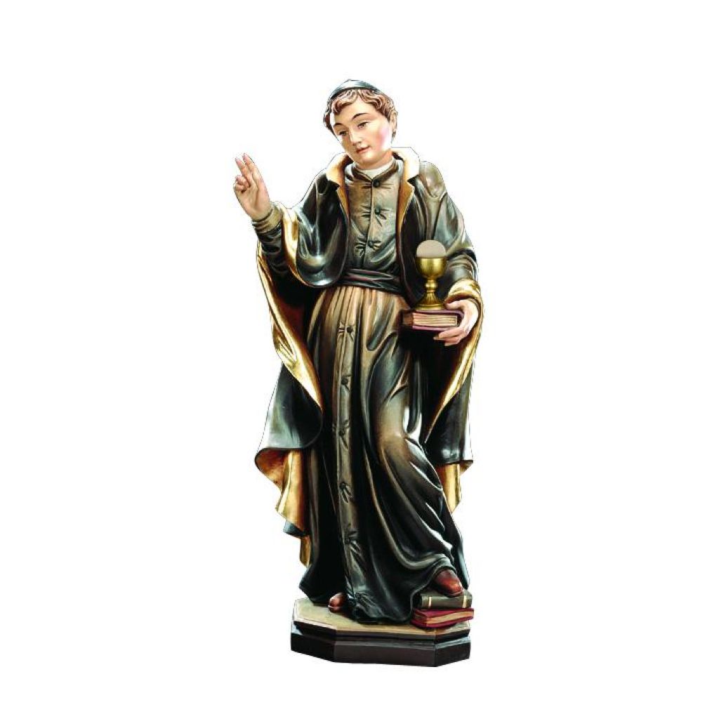 Drevená socha je vyrezaná z javorového dreva, nádherne maľovaná jemnými olejovými farbami a zlátená pravým plátkovým zlatom. Dostupná vo farbe, alebo prevedení natur (prírodné drevo) v rôznych veľkostiach.