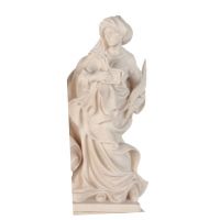 Drevená socha je vyrezaná z javorového dreva, nádherne maľovaná jemnými olejovými farbami a zlátená pravým plátkovým zlatom. Dostupná vo farbe, alebo prevedení natur (prírodné drevo) v rôznych veľkostiach.