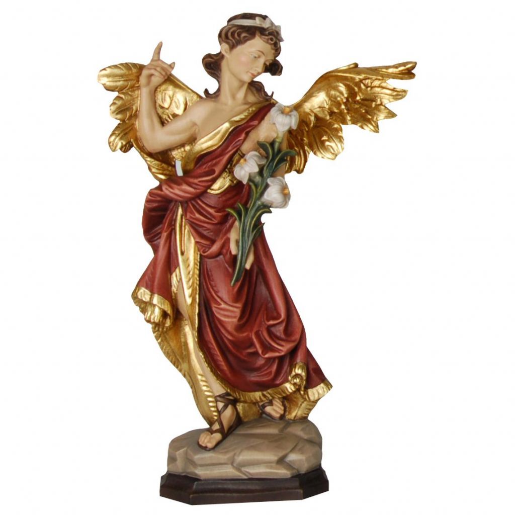 Drevená socha je vyrezaná z javorového dreva, nádherne maľovaná jemnými olejovými farbami a zlátená pravým plátkovým zlatom. Dostupná vo farbe, alebo prevedení natur (prírodné drevo) v rôznych veľkostiach.