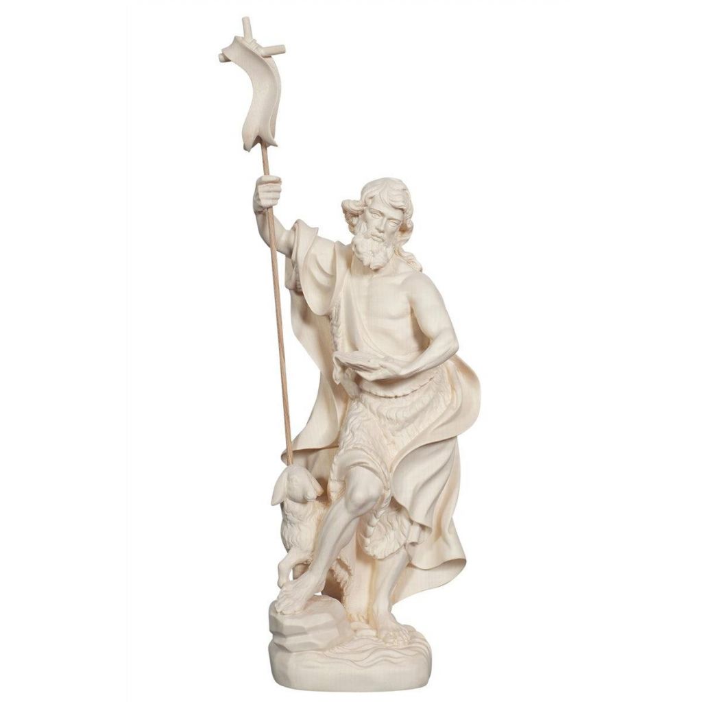 Drevená socha Svätého Jána Krstiteľa je nádherne maľovaná jemnými olejovými farbami a zlátená plátkovým zlatom. Dostupná vo farbe, alebo prevedení natur (prírodné drevo) v rôznych veľkostiach.