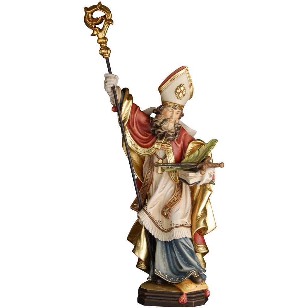 Drevená socha je vyrezaná z javorového dreva, nádherne maľovaná jemnými olejovými farbami a zlátená pravým plátkovým zlatom. Dostupná vo farbe, alebo prevedení natur (prírodné drevo) v rôznych veľkostiach.