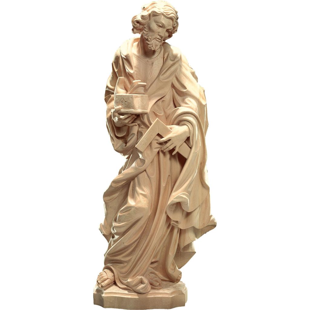 Drevená socha je vyrezaná z javorového dreva, nádherne maľovaná jemnými olejovými farbami a zlátená pravým plátkovým zlatom. Dostupná vo farbe, alebo prevedení natur (prírodné drevo) v rôznych veľkostiach.