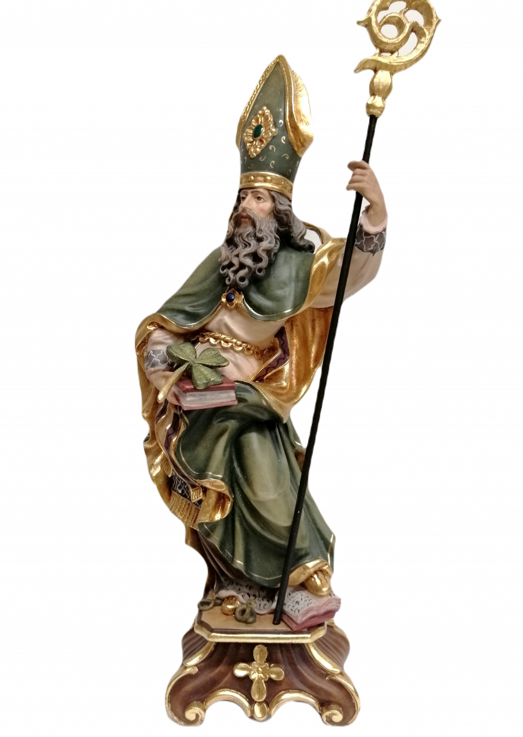Tieto sochy Svätých sú nádherne vyrezané z masívneho dreva a ručne maľované jemnými olejovými farbami. Niektoré modely zlátené plátkovým zlatom. Dostupné vo farbe v rôznych veľkostiach.