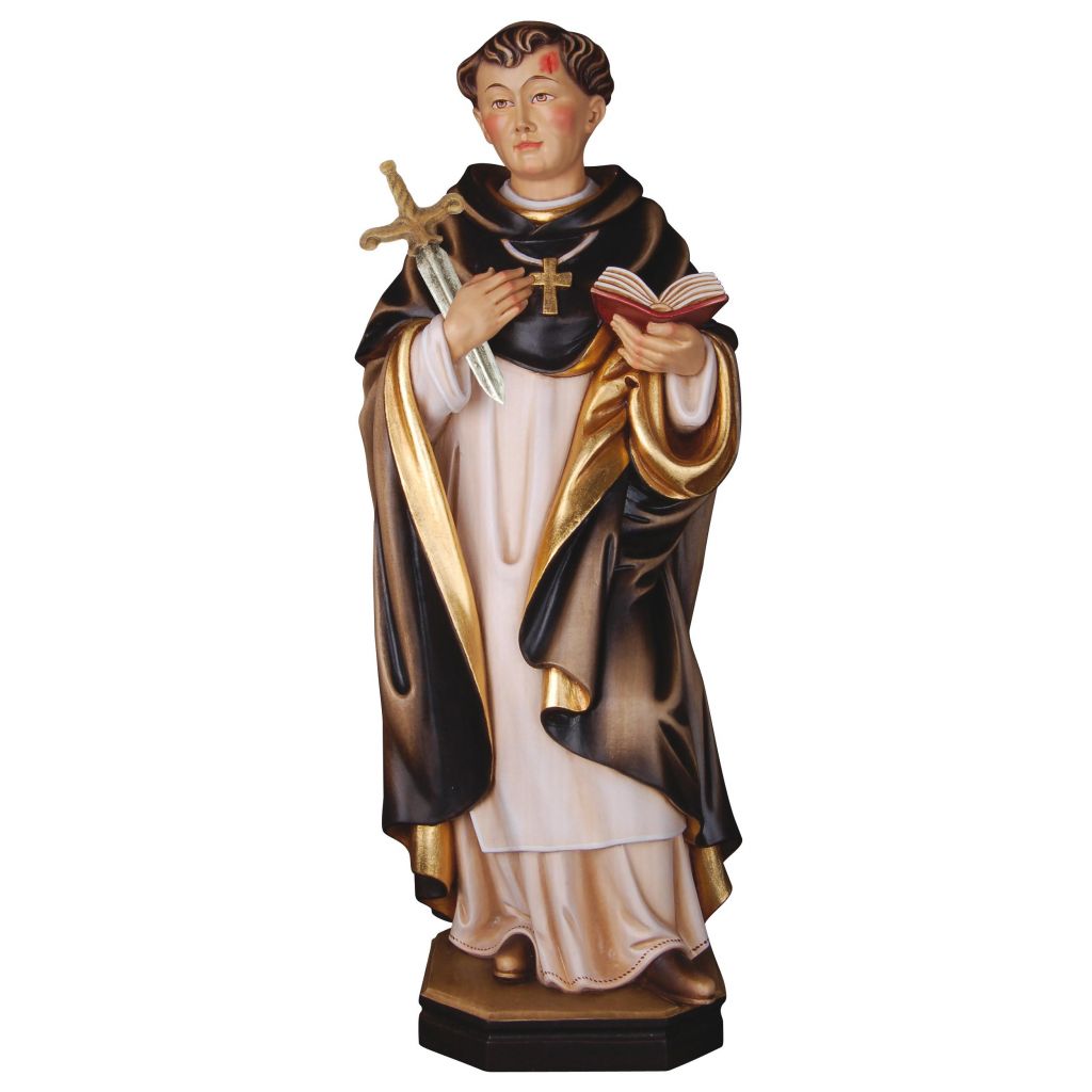 Drevená socha je vyrezaná z javorového dreva, nádherne maľovaná jemnými olejovými farbami a zlátená pravým plátkovým zlatom. Dostupná vo farbe, alebo prevedení natur (prírodné drevo) v rôznych veľkostiach.