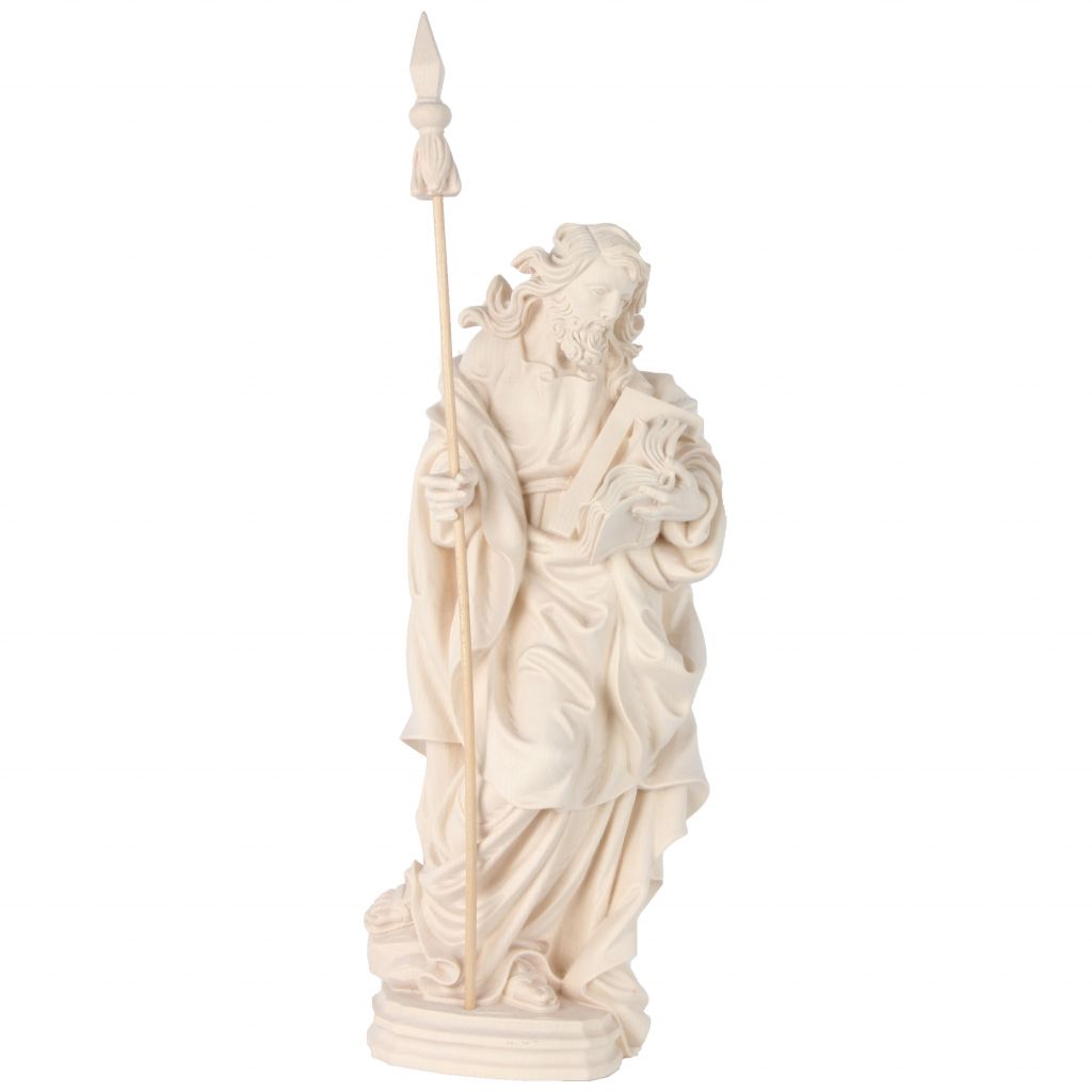 Drevená socha je vyrezaná z javorového dreva, nádherne maľovaná jemnými olejovými farbami a zlátená pravým plátkovým zlatom. Dostupná vo farbe, alebo prevedení natur (prírodné drevo) v rôznych veľkostiach.