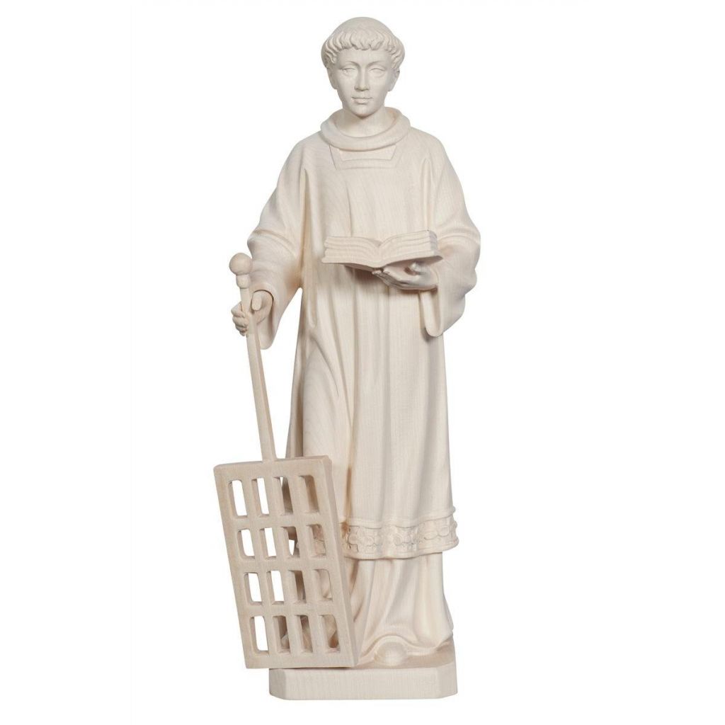 Drevená socha Svätého Vavrinca je nádherne maľovaná jemnými olejovými farbami a zlátená plátkovým zlatom. Dostupná vo farbe, alebo prevedení natur (prírodné drevo) v rôznych veľkostiach.